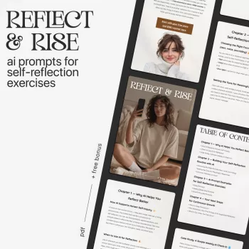 Reflect & Rise — Self-Reflection Guide with AI | Digital Download eBook & Printable Checklist | Mindset Growth Journal Prompts